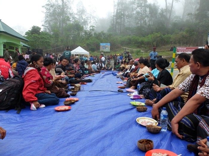 Wisatawan domestik dan mancanegara berkumpul dan duduk bersama. Makanan pun disajikan, tiap orang mendapatkan 1 piring nasi beserta lauk. Mereka yang muslim Muslim mendapat ayam, dan mereka yang Kristiani serta umat agama lain mendapat semangkuk sup babi.