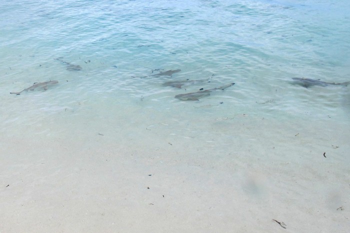 Bayi-bayi hiu tersebut nyatanya sungguh jinak. Mereka besarnya selengan manusia dewasa, tapi tidak menyerang manusia. Ketika menyeburkan kaki atau berenang di pantainya, mereka malah menjauh. Tapi ketika kita naik ke darat, mereka mendekat lagi.