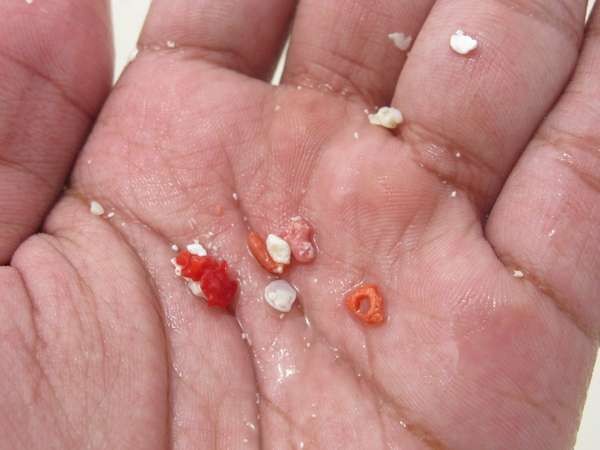 Terdapat banyak pecahan karang yang berwarna merah dan berukuran sangat kecil. Kalau berlarian di pantainya dengan telanjang kaki, maka akan terasa sakit karena menginjak pecahan karangnya.