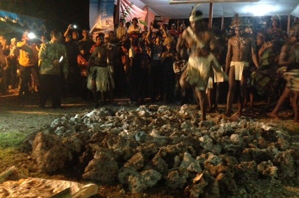 Tak lama kemudian, seorang wanita yang berpakaian adat bersiap untuk jalan di atas bara api. Betapa kaget warga dan wisatawan, dia tidak sekadar berjalan tapi juga menari! Suara Tifa (alat musik khas Papua-red) mengiringi tariannya di atas bara api.