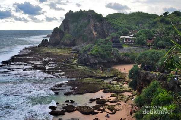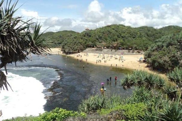 Cukup berkendara ke arah selatan dari Kota Yogyakarta, maka Anda akan menemukan pantai ini. Keunikan pantai ini adalah sebuah air terjun yang langsung jatuh ke laut. Pada musim hujan, air terjun yang terbentuk akan lebih besar lagi.