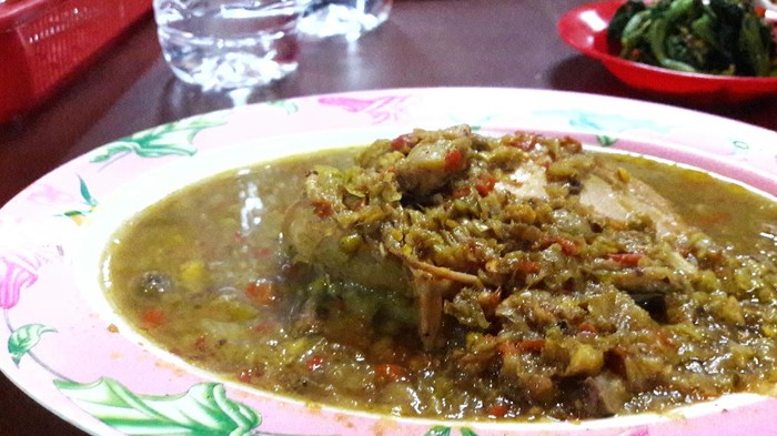 Penampilannya cukup menggugah selera dan setelah dicicipi, rasanya pun mantap. Bumbu rempah-rempah berpadu dengan rasa pedas begitu menggoyang lidah. Pastinya menu ini cocok sekali buat traveler pecinta makanan pedas.