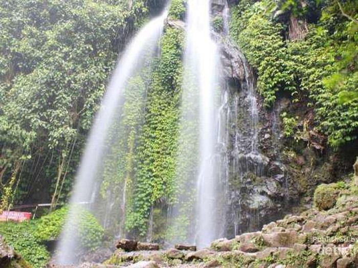 Air terjun ini tingginya sekitar 30 meter dan tampak dua aliran mengalir deras. Airnya begitu jernih. Dengan udara segar yang juga terasa di sana, objek wisata ini cocok sekali dikunjungi yang ingin kabur sejenak dari hiruk pikuk perkotaan.