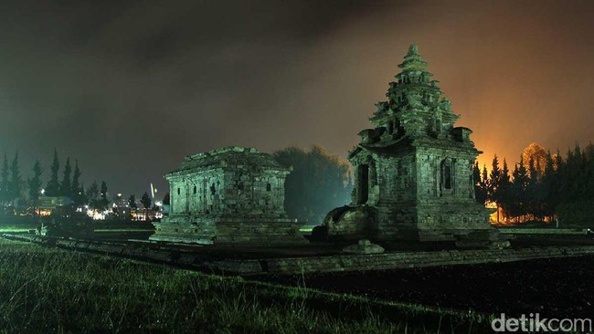 Keindahan Candi Arjuna tidak hanya tampak pada pagi atau sore hari saja, tapi juga saat malam hari. detikTravel pun sudah membuktikannya langsung ketika berkunjung ke Dieng pada Selasa kemarin (18/4/2017).