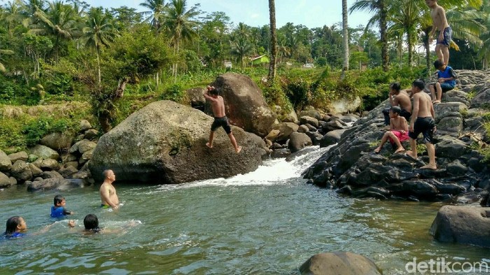 Anak-anak dan remaja yang berani, melompat pada tumpuan batu besar untuk melompat ke sungai. Ini menjadi sensasi tersendiri yang ingin memacu adrenalin. Jangan khawatir terbentur batu, karena lokasi di sungai itu cukup dalam.
