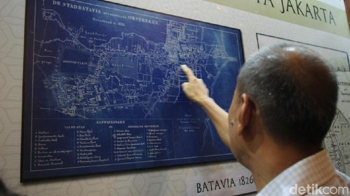 Sambil berpikir, Candrian menatap peta biru Batavia tahun 1826 yang tertempel di tembok. Tak berapa lama, ia menunjuk satu titik di luar tembok Batavia yang disebutnya sebagai kampung tertua di Jakarta.