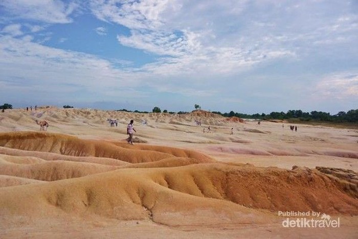 Tanahnya berwarna kemerahan, berundak-undak membentuk pola yang sangat unik sekali. Undakan pasirnya cukup luas dengan ketinggian yang berbeda-beda. Pengelola wisata memasang replika hewan seperti unta dan kuda yang menyebar diantara undakan-undakan pasir semakin menambah estetika. Destinasi wisata ini cocok untuk dijadikan background foto-foto kekinian yang instagramable.