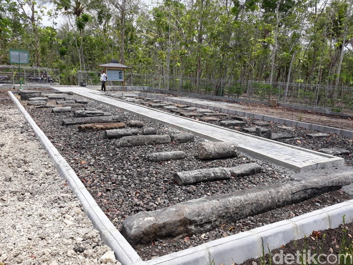 "Benda-benda tersebut secara keseluruhan berjumlah 57 buah yang terdiri atas 23 buah menhir, 1 buah, kepala menhir, 28 buah peti kubur batu, 2 buah patok peti kubur batu dan 3 buah batu kenong," tulis pada papan informasi tersebut.
