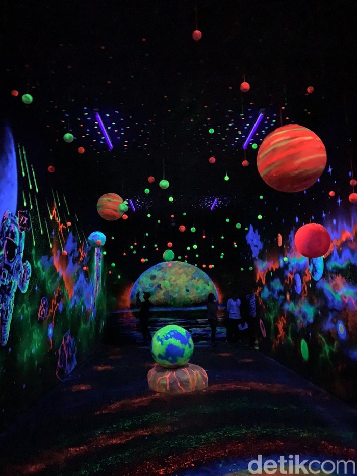 Wahana itu memiliki 2 area sekaligus yaitu Milenial World (indoor) dan Glow Garden (outdoor). Jika pengunjung memasuki area indoor akan terdapat berbagai aneka rekayasa cahaya proyektor dan lampu dengan berbagai tema.