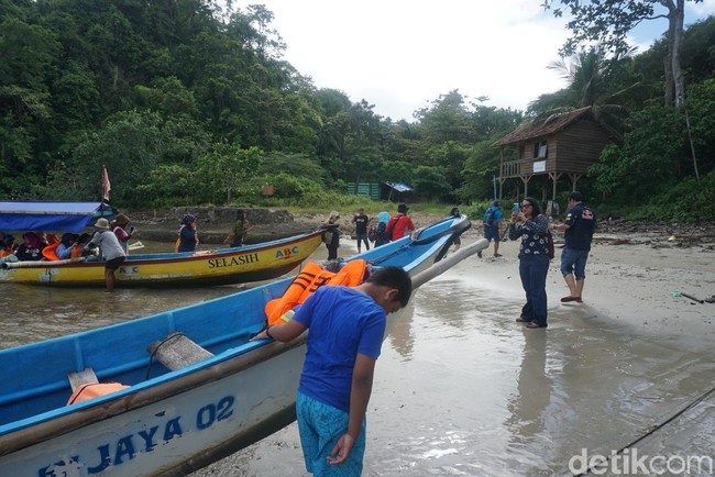 "Rp 30 ribu sekali jalan dan Rp 50 ribu untuk keliling pulau," ujar salah satu pemandu wisata yang menyewakan kapal cadik.