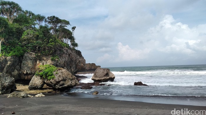 Di pantai ini kita bisa menikmati 'kegigihan' ombak menghantam bukit karang sehingga menyisakan rupa yang alami. Suara hantaman ombak juga menimbulkan suasana khas pesisir, meski terkadang mengejutkan.