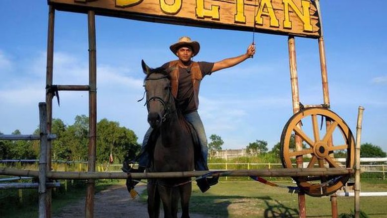Di sini terdapat juga beberapa spot foto ala cowboy. Baju-baju cowboy juga disewakan, lo.