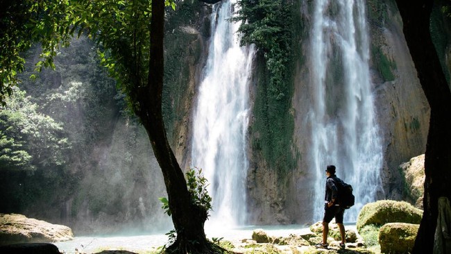 Curug Cikaso di Sukabumi, Jawa Barat punya panorama indah. Ditambah suasananya yang masih alami, dijamin bikin pikiran segar kembali.