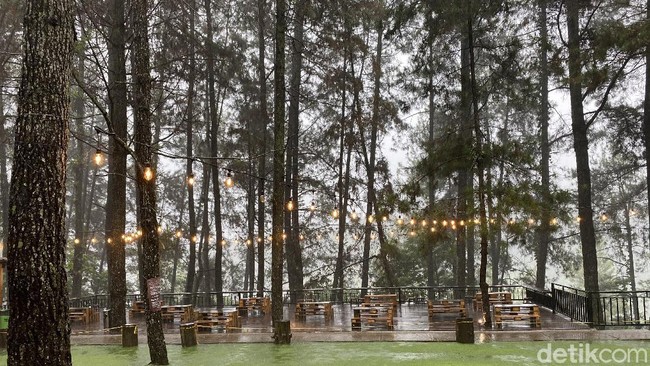 Kafe Pasir Angin mengusung tema keindahan alam dengan pesona hutan pinus. Ditambah pemandangan Gunung Geulus, tempat ini bisa jadi spot foto yang cantik.