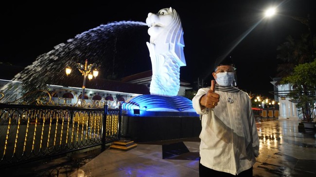 "Biasanya keluarnya air mancur ini dari patung ikan. Kita buat beda, kita buat berkelas. Makanya keluarnya air dari Patung Merlion. Ini juga agar konsep arung jeram di Kota Madiun berbeda," ungkapnya.