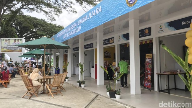 Di sana ada delapan gerai makanan seperti ayam soto cetar, mie leor, pentol, burger bageur dan beberapa minuman misalnya kopi merdeka, happy boba, ice pose Sukabumi dan gerobak abelito. Satu kios lagi khusus untuk gerai UMKM Jabar Juara yang berisi hasil karya seperti batik, tas anyaman, keripik dari dedaunan dan lain-lain.