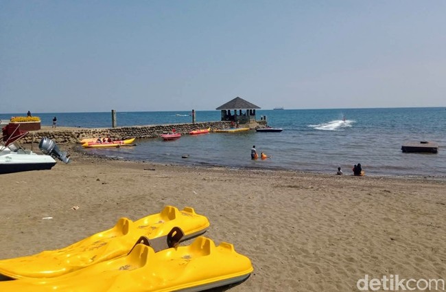 Pantai ini landai dan memiliki spot pasir luas. Ombaknya pun tenang, sehingga cocok untuk berenang anak-anak. Di objek wisata ini juga bisa untuk atraksi permainan air. Misalnya berenang menggunakan ban, serta bermain kano. Bagi yang suka olahraga menyelam atau sekadar snorkling, bisa melakukannya di sini.
