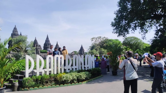 Candi Roro Jonggrang atau yang dilebih dikenal sebagai Candi Prambanan ini berada di Yogyakarta. Prambanan laris manis dikunjungi saat libur lebaran.