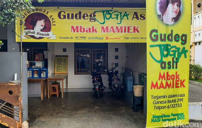 Inilah warung Mbak Mamiek, kedai makan gudeg Jogja yang berdiri sejak tahun 2015. Kedai ini berada di Jalan Ganesha Mukti Nomor 299, Pedurungan, Semarang.