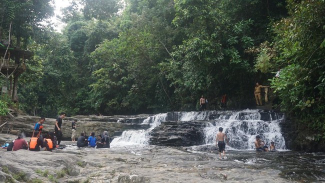 Kesejukan sangat terasa di lokasi air terjun ini. Meski air terjunnya tidak terlalu tinggi, namun airnya sangat segar dan dingin. Wajar saja karena di sekelilingnya masih hutan belantara dengan pepohonan yang asri.