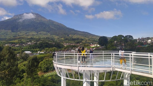 Jembatan kaca ini pun jadi spot utama. Saat kondisi cerah, wisatawan bisa selfie ataupun foto-foto sepuasya berlatar pemandangan hijau dan gunung. Selain itu, ada pula tempat nongkrong sekalian sambil menyerupu kopi.