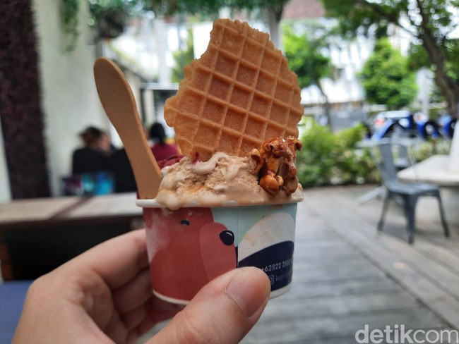 Jika traveler mampir ke sana, akan disuguhkan 2 jenis es krim dengan bahan lokal (reguler) dan impor (premium). Untuk pilihan rasanya, mulai dari yang standar seperti vanila, cokelat, strawberry, mix berries, regal, oreo sampai yang unik seperti pop corn latte, kiwi yuzu dan dragon fruits.