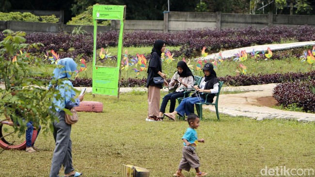 Warga terutama anak-anak langsung berhamburan di taman begitu petugas membuka pintu pagar setelah ditutup sementara karena ada peresmian, Jumat pagi. Anak-anak langsung menyerbu balon udara, serta melihat aneka hewan reptil yang dibawa oleh komunitas pencinta hewan Bojong Gede dan Animals Education and Socialization.