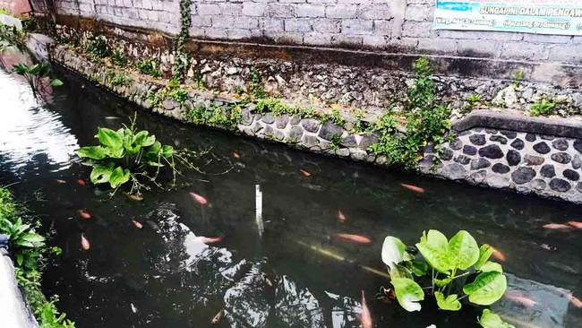 Bukan di Jepang, sungai dengan air yang sangat jernih dan dipenuhi ikan koi ada di Bali. Tepatnya di Banjar Gunung, Kelurahan Pemogan, Denpasar, Bali. Keren!