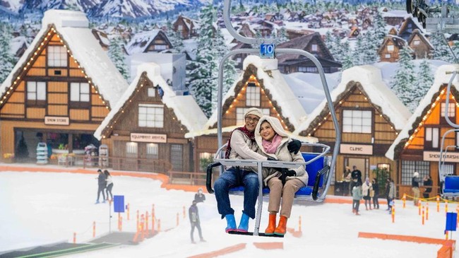 Mengusung tema musim salju di Jepang, Trans Snow World Surabaya mengajak pengunjung untuk bermain salju sambil melihat pemandangan Gunung Fuji, rumah khas Jepang dan juga bunga sakura yang cantik.