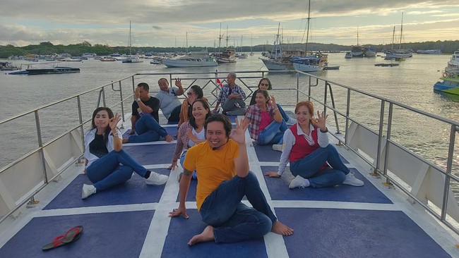 Selain untuk memanjakan diri dengan pemandangan alam yang indah, traveler juga bisa melakukan aktivitas-aktivitas menyehatkan dan menyegarkan lain di atas kapal pesiar. Salah satunya yaitu melakukan yoga, seperti yang dilakukan oleh Komunitas Yoga Bali Happy Movement pada Sabtu (6/8/2022).