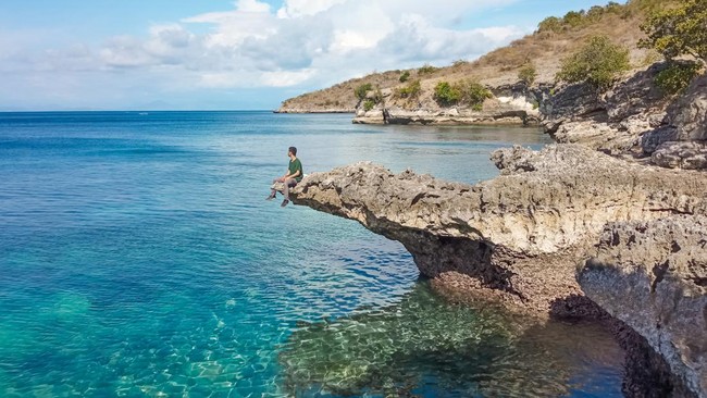 Tak hanya itu, wisatawan juga dapat berfoto di antara hamparan bebatuan yang menjorok ke laut. Bebatuan ini sangat kokoh sehingga bisa dijadikan sebagai spot untuk berfoto sambil duduk-duduk berlatarkan bentangan alam dan lautan.