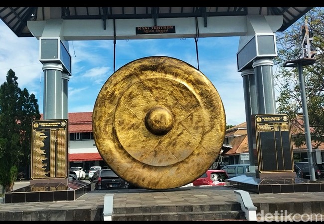 "Kenapa di beri nama Gong Kyai Tentrem, pada tahun 1995, tetap satu tahun sebelum seluruh komplek Monjaya diresmikan oleh bapak Soeharto pada 5 Desember 1996. Gong ini dibuat oleh seniman asal Yogyakarta bernama Sutarjo," ungkap Bayu kepada detikJatim, Sabtu (13/8/2022).
