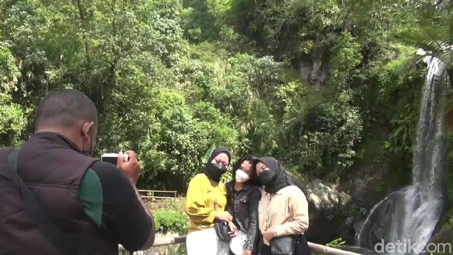 Air terjun dengan ketinggian 15 meter ini menyuguhkan pemandangan menyejukkan. Selain berselfie, wisatawan juga bermain air di bawah air terjun merasakan dinginnya air pegunungan yang berhulu di Gunung Slamet.