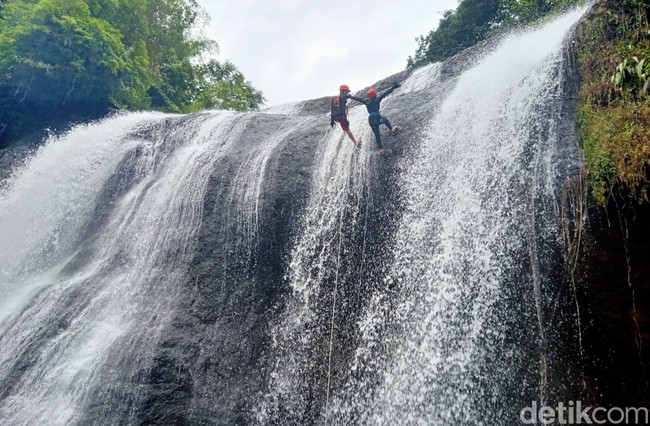 "Tinggi curug ini sekitar 25 meter dengan lebar 30 meter, tipe air terjunnya horse tail. Artinya air yang jatuh kebawah kontak dengan dinding air terjun secara konsisten. Karenanya cocok untuk shower climbing," katanya.