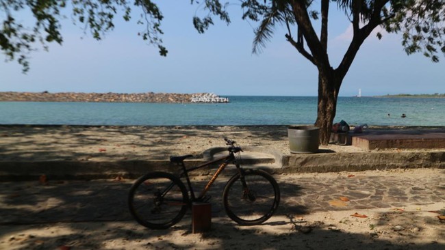 Saat detikTravel mencoba naik sepeda di sekitar tanggul, terlihat masih banyak pekerja yang menyelesaikan pembangunan. Ada backhoe yang tengah menyusun batu di dekat Tanjung Lesung Beach Hotel.