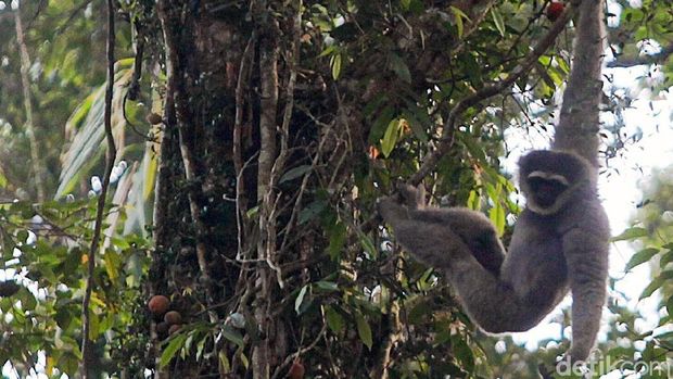 Owa Jawa di Pusat Pendidikan Konservasi Alam Bodogol, kawasan Gunung Gede Pangrango, Bogor, Jawa Barat, Selasa (24/11/2015). Foto: Rachman Haryanto/detikcom |