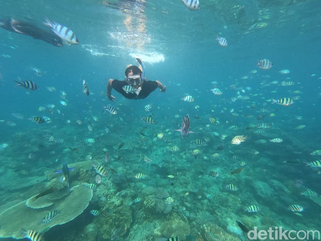 "Bagus, baru pertama kali. Terumbu karang masih bagus, masih asli, yang menarik terumbu karang sama ikannya banyak," ungkap Siska, Senin (8/5/2023).