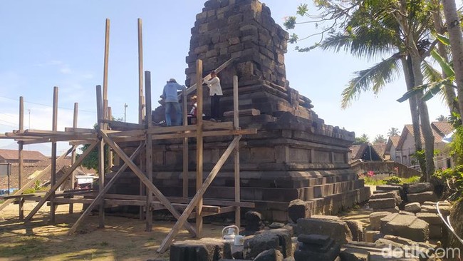 Pantauan di lokasi, terlihat sejumlah orang dari Balai Pelestarian Kebudayaan (BPK) wilayah X memasang perancah. Perancah dengan bahan dari kayu ini didirikan di sebelah selatan candi.