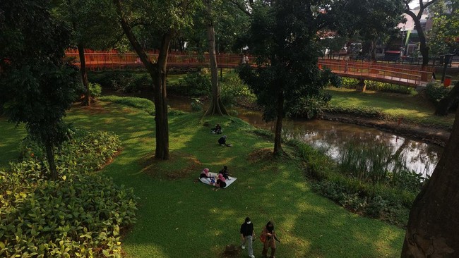Sebab, Taman Langsat memiliki banyak pohon yang besar dan rindang, lalu jumlah pengunjungnya juga tak sebanyak Taman Ayodya. Kalau datang ke sini saat sore hari, detikers bisa melihat beberapa ekor bebek yang berenang di kali.