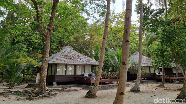Cottages di pulau ini berada di sepanjang tepi pantai, sehingga pemandangan laut dapat langsung dinikmati sambil merebahkan badan di kamar.