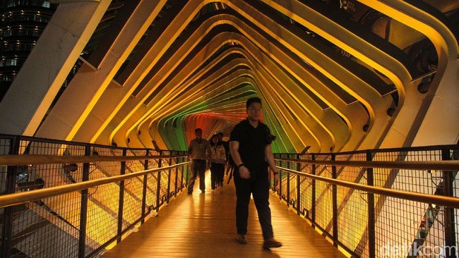 Saat malam hari, gemerlap lampu warna-warninya akan menyala. Mengutip salah satu situs agen travel, jembatan ini juga gratis dan buka 24 jam.