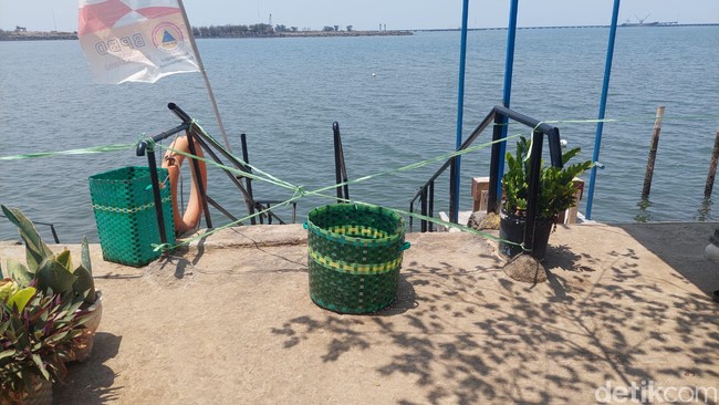 Kini, tidak ada lagi orang dewasa dan anak kecil berendam di Pantai Mayangan. Dari pengamatan detikJatim, hanya terlihat sejumlah pemuda sedang duduk di sekitar gazebo, sedangkan area kungkum (berendam) sudah ditutup dengan tali rafia oleh petugas.