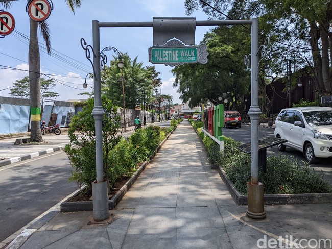 detikJabar berkesempatan untuk berkunjung ke Palestina Walk pada Senin (06/11/2023). Terlihat hingga saat ini Palestine Walk masih dijadikan sebagai spot foto oleh masyarakat Kota Bandung. Selain itu, Palestine Walk ini pun dijadikan sebagai akses jalan oleh para pejalan kaki yang hendak menuju ke arah Jalan Dalem Kaum dan sebaliknya.