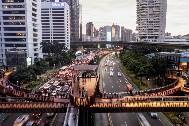 Jembatan Penyeberangan Orangan (JPO) Phinisi Karet Sudirman menjadi spot yang tak boleh dilewatkan jika berwisata ke Jakarta. Di sini, traveler bisa mendapatkan foto estetik Jakarta sebagai kota megapolitan.