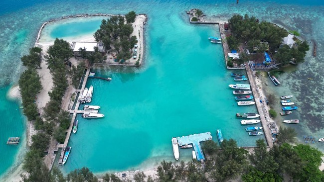 Dalam kunjungan detikTravel ke sini pada Senin (27/11/2023), kami langsung disuguhkan oleh pemandangan air laut yang berwarna biru kehijauan seperti emerald. Selain itu, terlihat pula area pulau yang masih dipenuhi oleh pepohonan sehingga perpaduan warna hijau tersebut cukup nyaman di mata.
