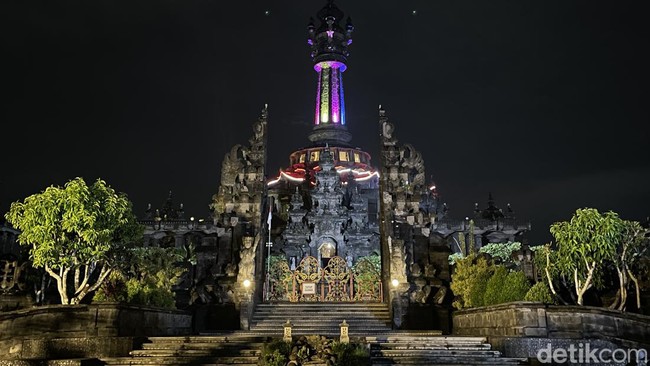 Menikmati keindahan Monumen Bajra Sandhi nggak cuma bisa di siang hari. Di malam hari, monumen di Denpasar ini nggak kalah cantik.
