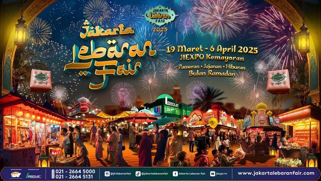 Perhelatan Jakarta Lebaran Fair 2025 digelar pada 19 Maret-6 April 2025 di JIExpo Kemayoran. Artinya, momen ini juga bisa menjadi alternatif wisata jelang Hari Raya Idul Fitri pada 31 Maret-1 April 2025.