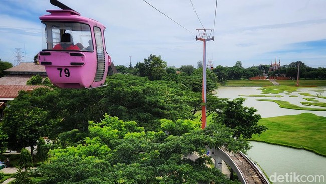 Pengalaman naik kereta gantung di TMII terasa makin lengkap, karena lokasi wisata ini telah mengubah 70 persen wilayahnya jadi area hijau. Indah, seru, sejuk bisa dirasakan sekaligus selama 20 menit dalam kabin yang menggantung setinggi 20 meter. Selama perjalanan, jangan lupa ambil foto dan video untuk update medsos.
