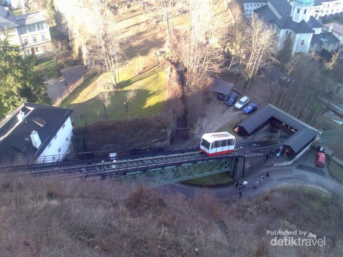 Menuju ke Kastil Hohensalzburg bisa jalan kaki atau naik kereta ini
