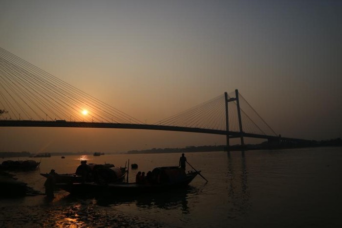 Salah satu spot terbaik untuk menikmati sunset di Kolkata adalah di bawah jembatan Vidyasagar Setu tepat di daerah Princep Ghat di tepi sungai Hooghly